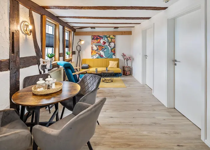 알스펠트를 방문하시면 Im Fachwerk 아파트에 머무실 수 있습니다. 54m^2 아파트는 1개의 침실, 1개의 욕실과 부엌을 갖추고 있습니다.